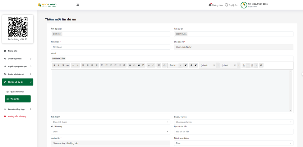 Bước 1: click “**Thêm dự án**” màn hình hiển thị như sau: