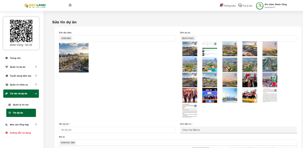 \-   Ảnh dự án: tải 20 ảnh/1 lần